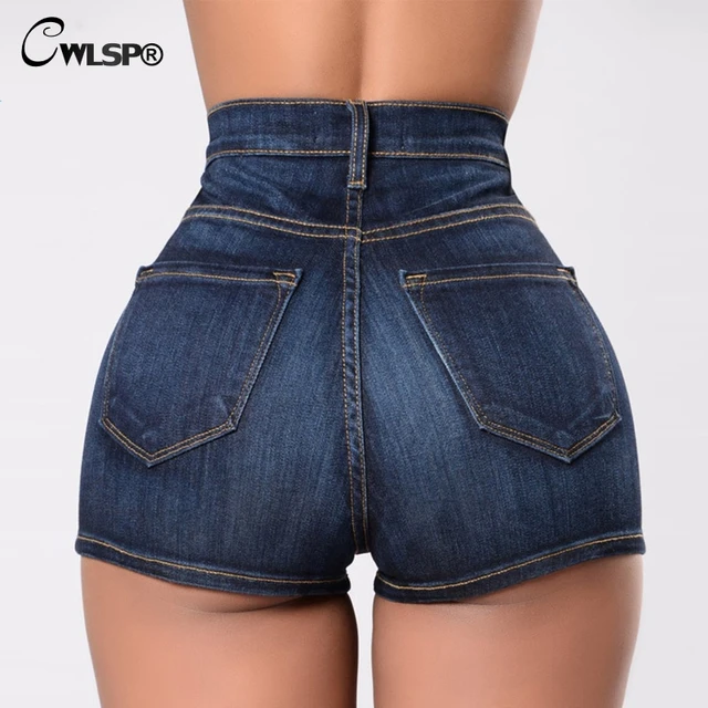 Best Offers CWLSP High Waist Cotton Jeans Shorts 2018 Women's Summer Denim Shorts Sexy Slim Size PlusHole Shorts Femme Hot Shorts QZ2637 Compare Prices